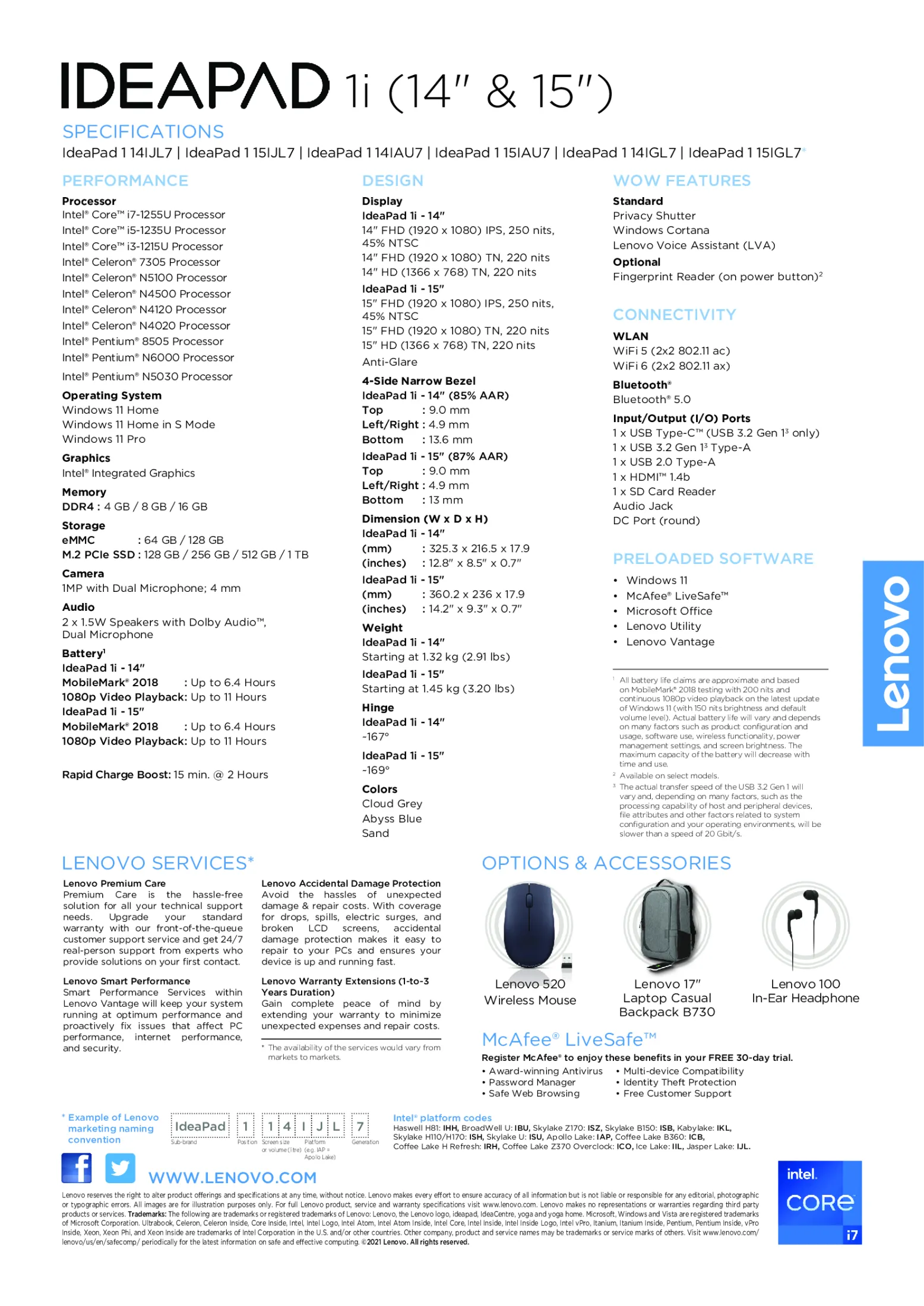 Lenovo IdeaPad 1 14IJL7 | 82LV005YSB | 14″ HD (1366×768) TN 220nits Anti-glare | Intel Celeron N4500 | 4GB RAM | 128GB eMMC